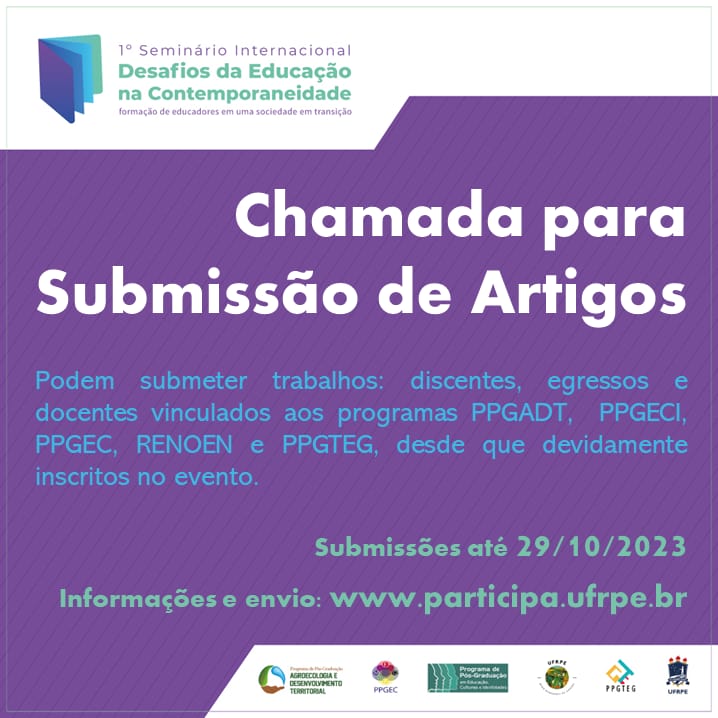 Nos dias 28 e 29 de novembro próximo, a Universidade Federal Rural de Pernambuco, através de seus cinco programas de pós-graduação (O Programa de Pós-Graduação em Agroecologia e Desenvolvimento Territorial - PPGADT; o Programa de Pós-Graduação em Educação, Culturas e Identidades- PPGECI; o Programa de Pós-Graduação em Ensino das Ciências - PPGEC; a Rede Nordeste de Ensino - RENOEN e o Programa de Pós-Graduação em Tecnologia e Gestão em Educação a Distância- PPGTEG) ligados à educação e à formação de professor pesquisador organizam o 1º Seminário Internacional Desafios da Educação na Contemporaneidade: formação de educadores em uma sociedade em transição em torno do eixo que lhes é comum – “A formação do educador”.